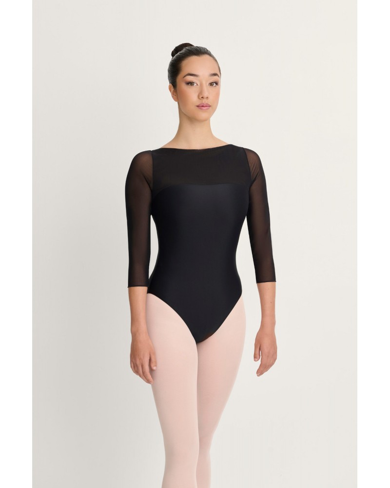 Maillot de màniga 3/4 amb transparències de gasa a l'escot, espatlles i esquena.